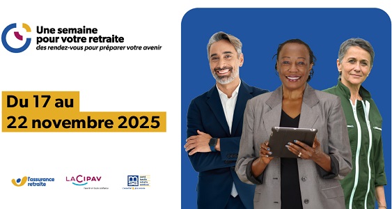 Du 17 au 22 novembre, l’Assurance retraite, la Cipav et la MSA s’associent pour accompagner les professionnels libéraux, les travailleurs indépendants ainsi que les exploitants agricoles dans la préparation de leur départ à la retraite.
